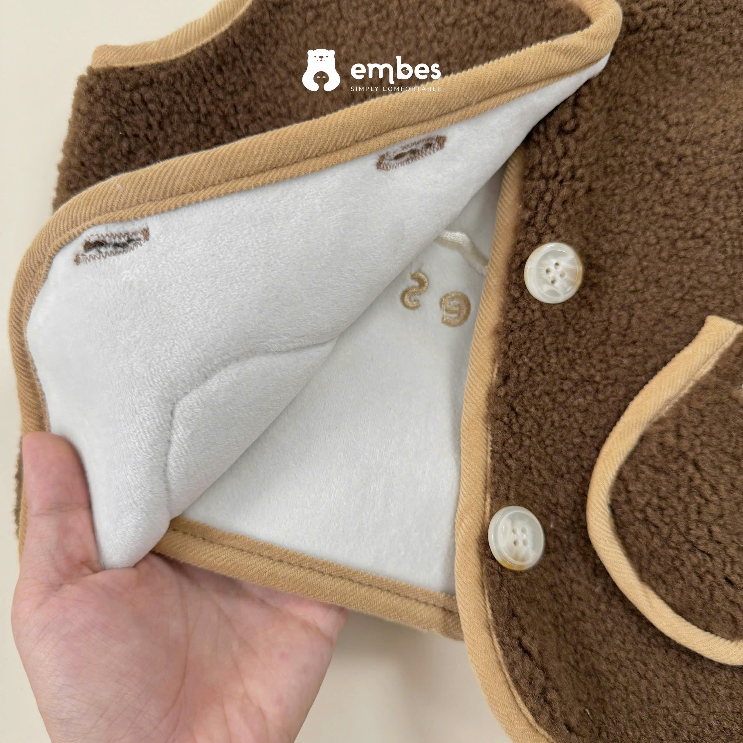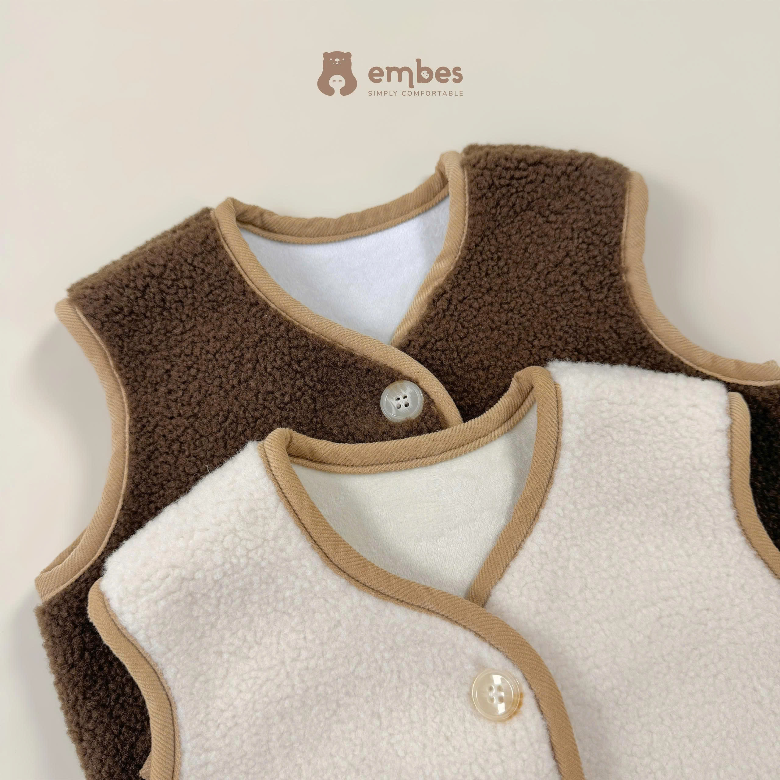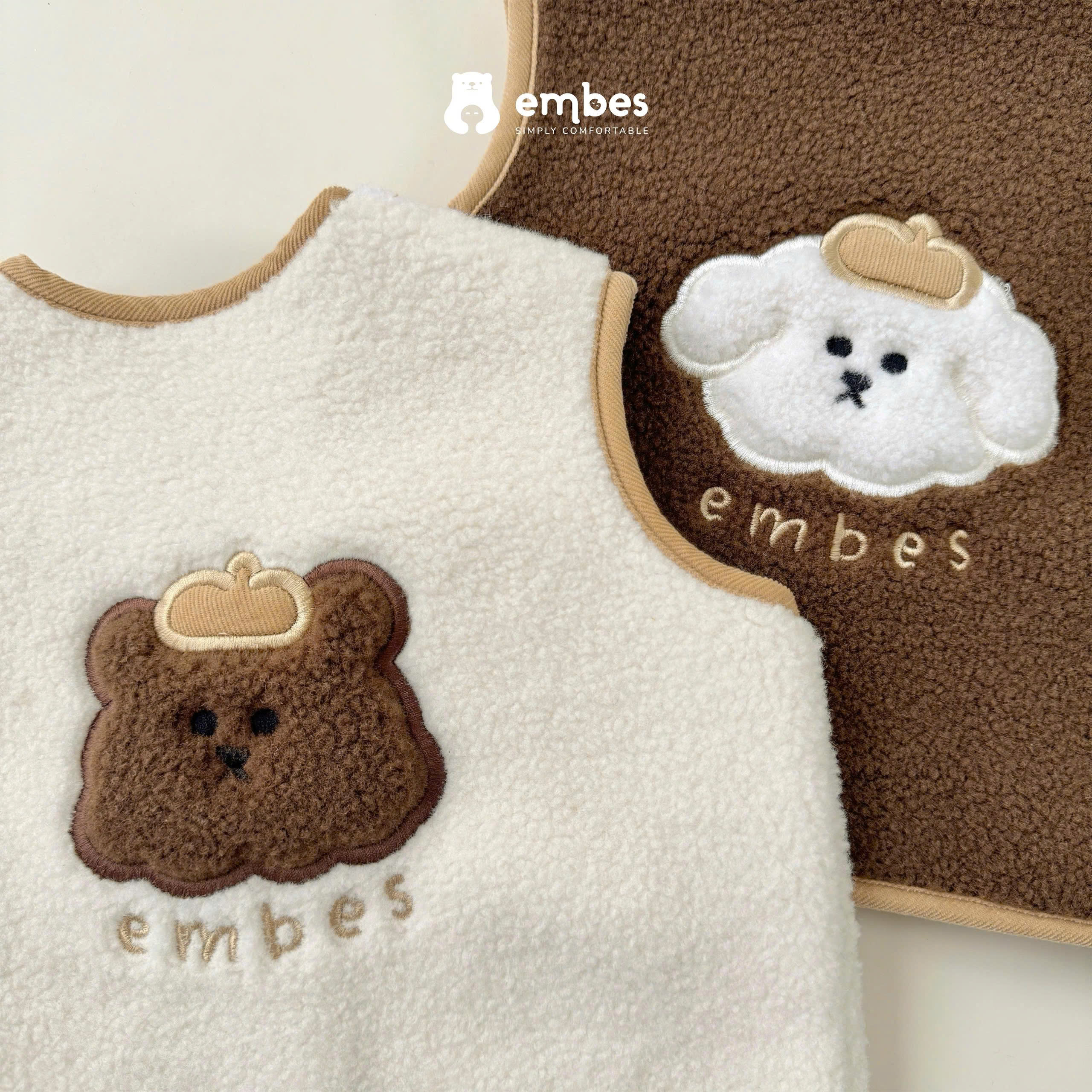 Gile Lông Cho Bé Embes, Áo Khoác Gile Thêu Hình Chất Nỉ Lông Mềm Giữ Ấm Cho Bé Trai Bé Gái Từ 8-18Kg