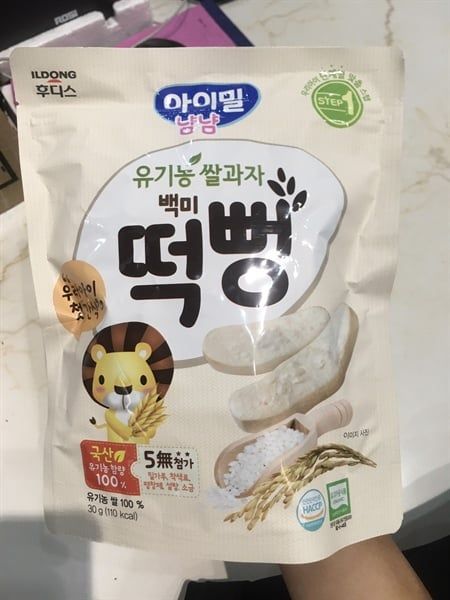 - Bánh gạo ILDONG 100% Organic của hãng thực phẩm nổi tiếng - Ildong Hàn Quốc - giúp bố mẹ hoàn toàn yên tâm khi bé tập ăn dặm. -Bánh gạo có dạng thanh dễ cầm nắm, khi bé gặm sẽ tan ra rất dễ dàng, ko sợ bé bị hóc