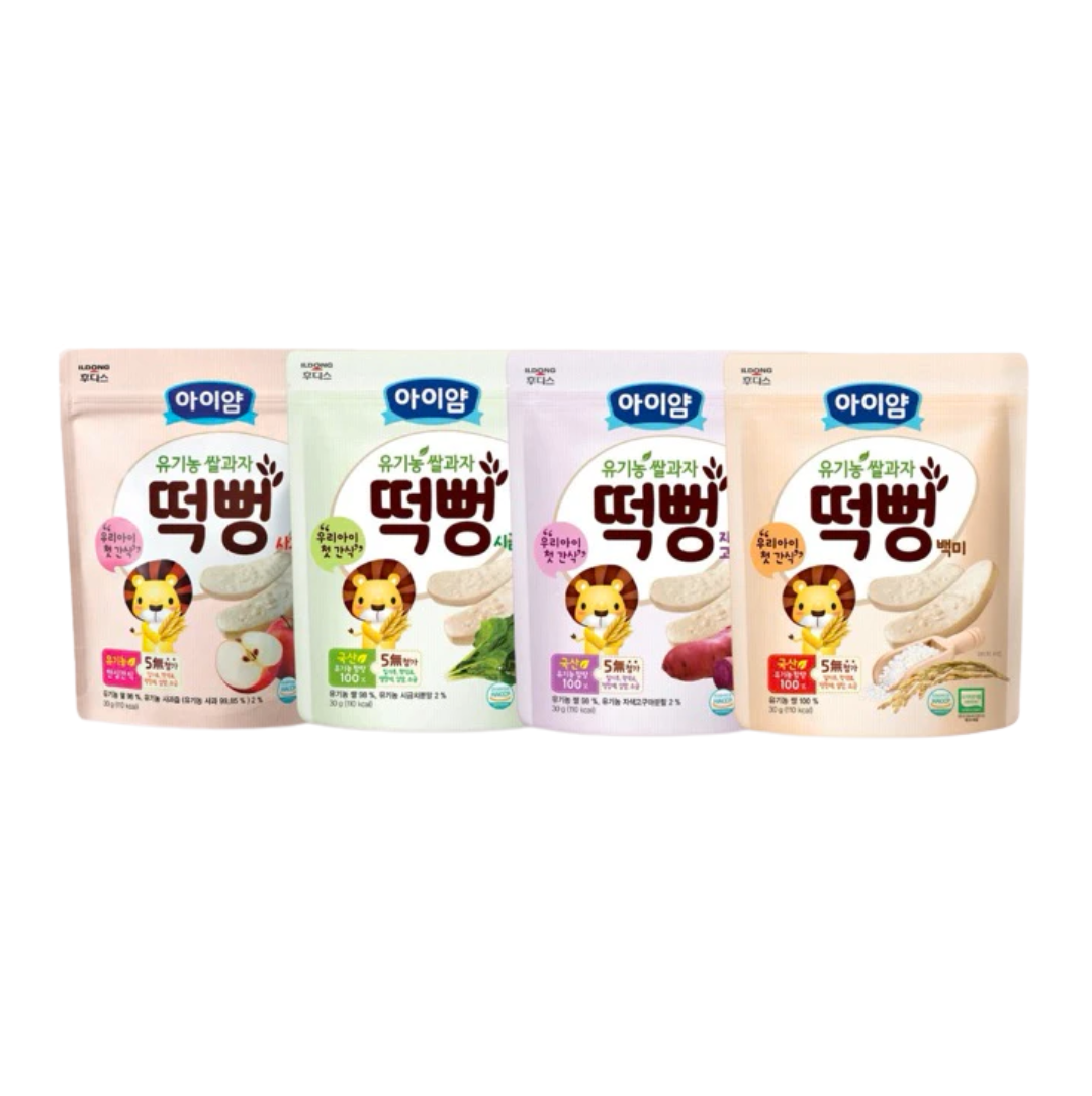 Bánh gạo ILDONG 100% Organic của hãng thực phẩm nổi tiếng - Ildong Hàn Quốc - giúp bố mẹ hoàn toàn yên tâm khi bé tập ăn dặm. -Bánh gạo có dạng thanh dễ cầm nắm, khi bé gặm sẽ tan ra rất dễ dàng, ko sợ bé bị hóc
