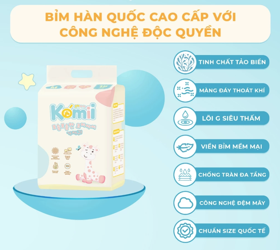 - AN TOÀN CHO DA NHẠY CẢM khi tã bỉm Komii đạt các chứng nhận về tiêu chuẩn chất lượng.