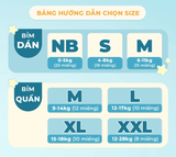Size M (9-14kg) – Bản tiêu chuẩn: 36 miếng – Bản Mini: 12 miếng