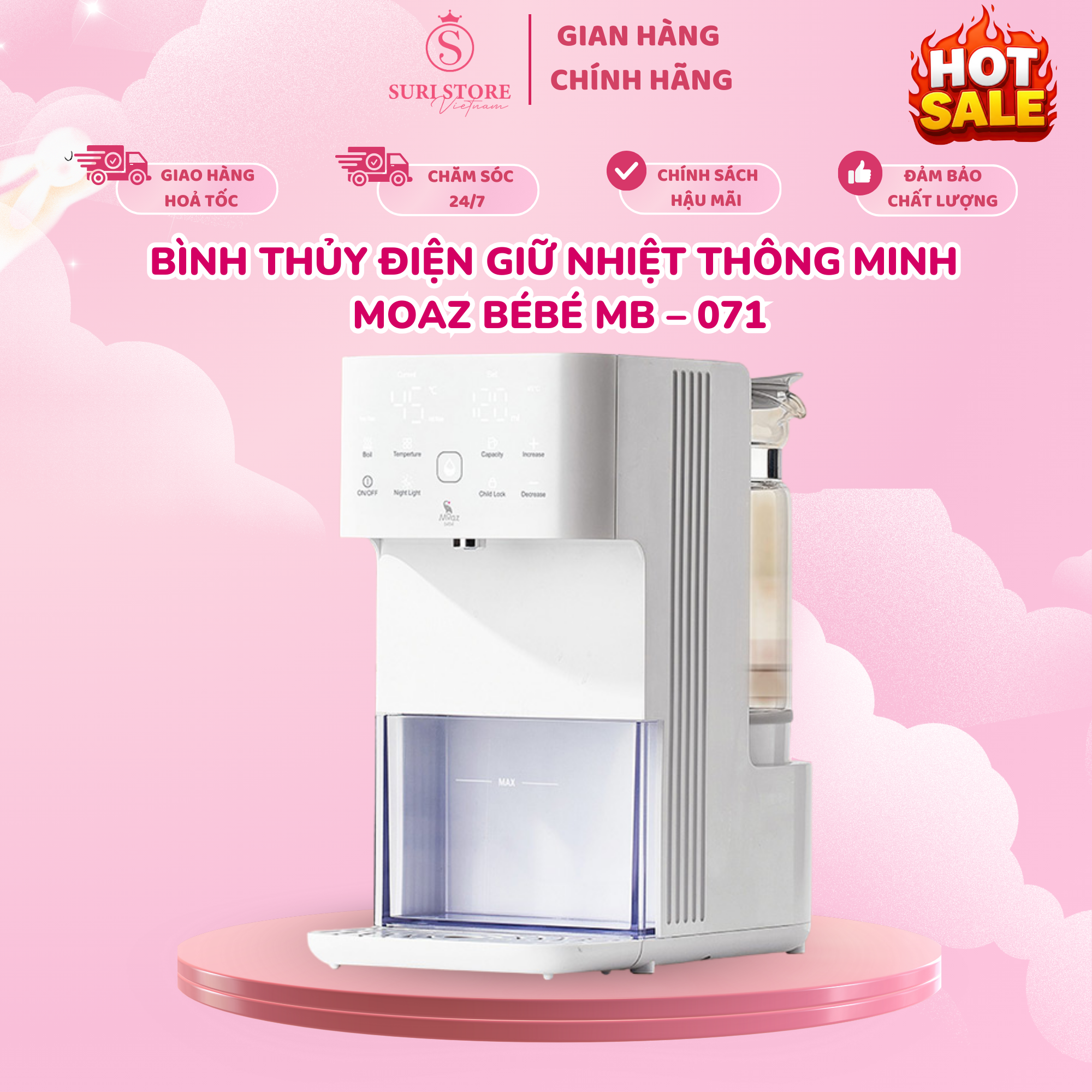 Bình thủy điện giữ nhiệt thông minh Moaz BéBé MB-071 là trợ thủ đắc lực cho các gia đình có trẻ nhỏ. Với thiết kế sang trọng, tinh tế và khả năng đun hâm nước đa chức năng, sản phẩm này giúp bố mẹ chuẩn bị sữa cho bé nhanh chóng, chính xác và an toàn tuyệt đối.