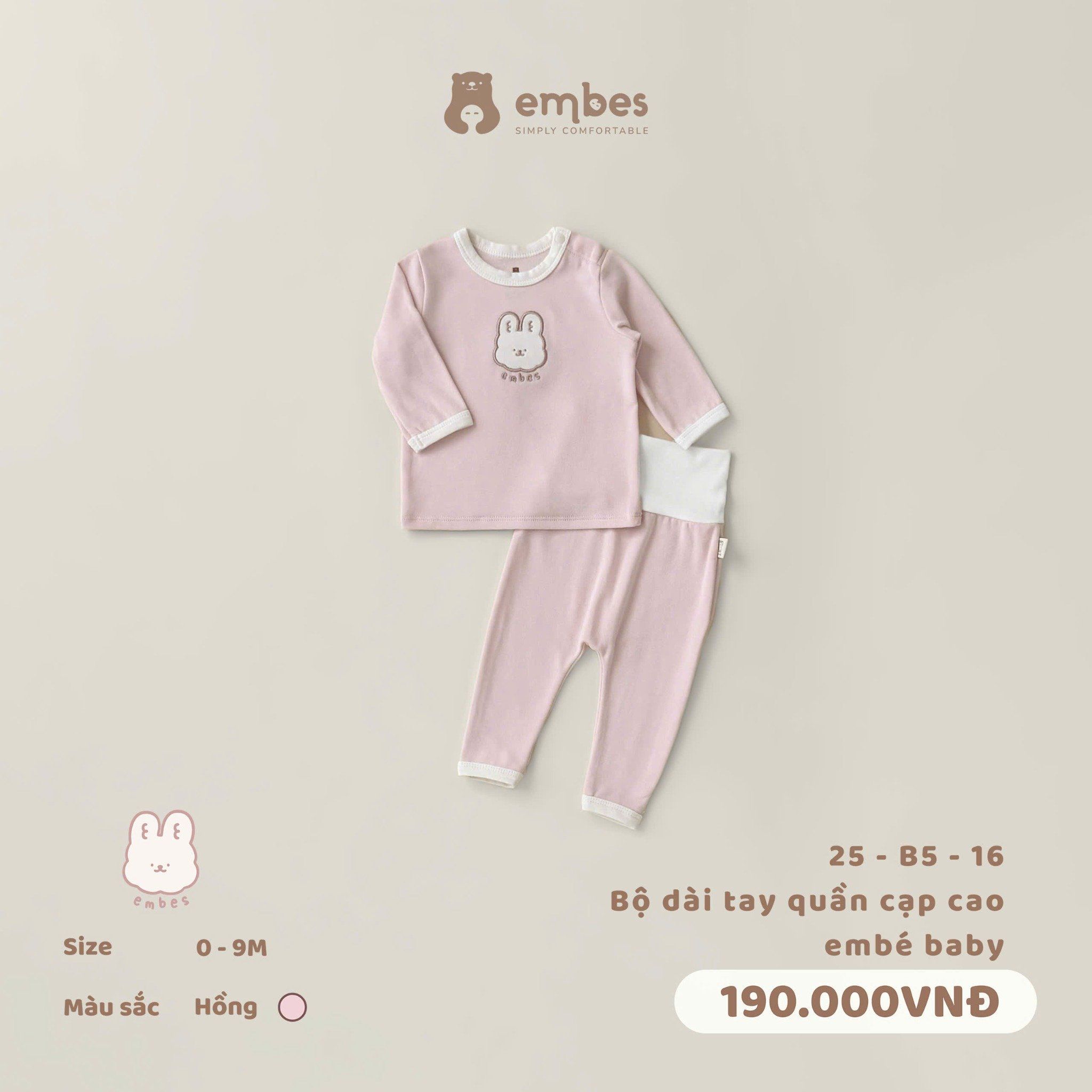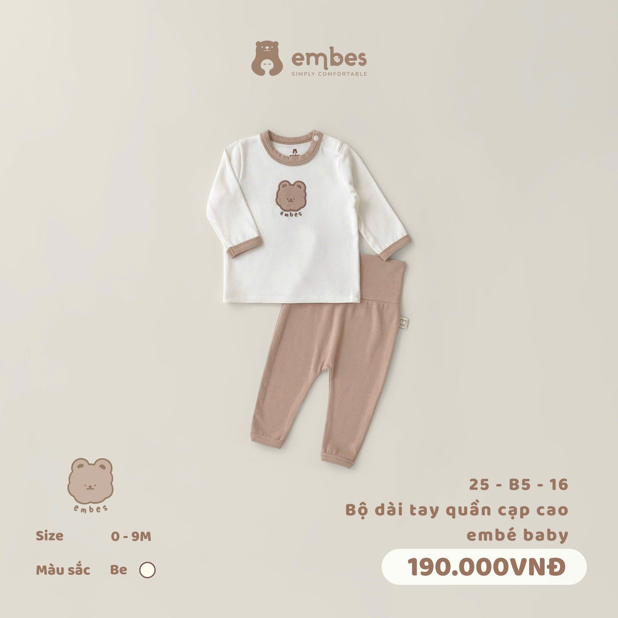 - Thiết kế: bộ dài tay quần cạp cao embes baby