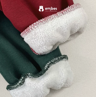 - Công dụng: Chất liệu Embes Wooly sử dụng vải nỉ cao cấp với bề mặt mịn màng và độ ấm tự nhiên mang hơi thở mới cho mùa Giáng sinh. Vải có độ dày vừa phải, fom dáng rộng rãi, linh hoạt giúp bé thoải mái vui đùa. Phần cạp chun mềm mại giữ form nhẹ nhàng, vừa ấm vừa xinh. Từng chi tiết đều hướng đến cảm giác ấm cúng, dễ chịu như chiếc ôm ngọt ngào trong không khí Giáng sinh.