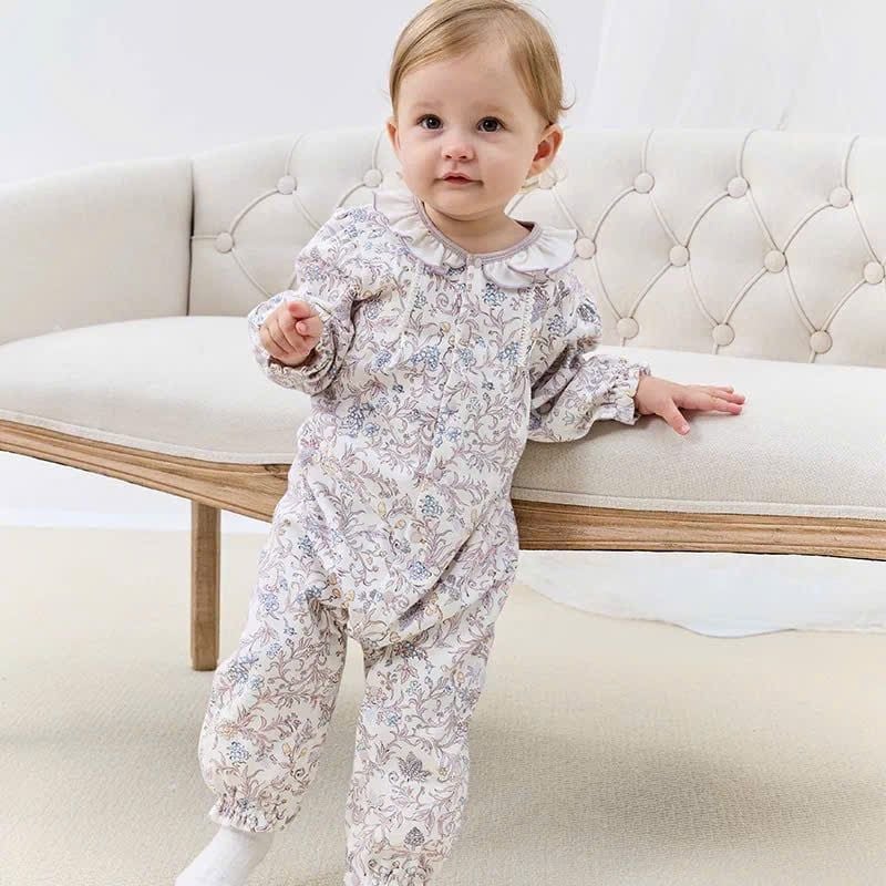 Phù hợp với bé gái: Thiết kế cổ bèo và họa tiết hoa lá thường được các mẹ lựa chọn cho bé gái.