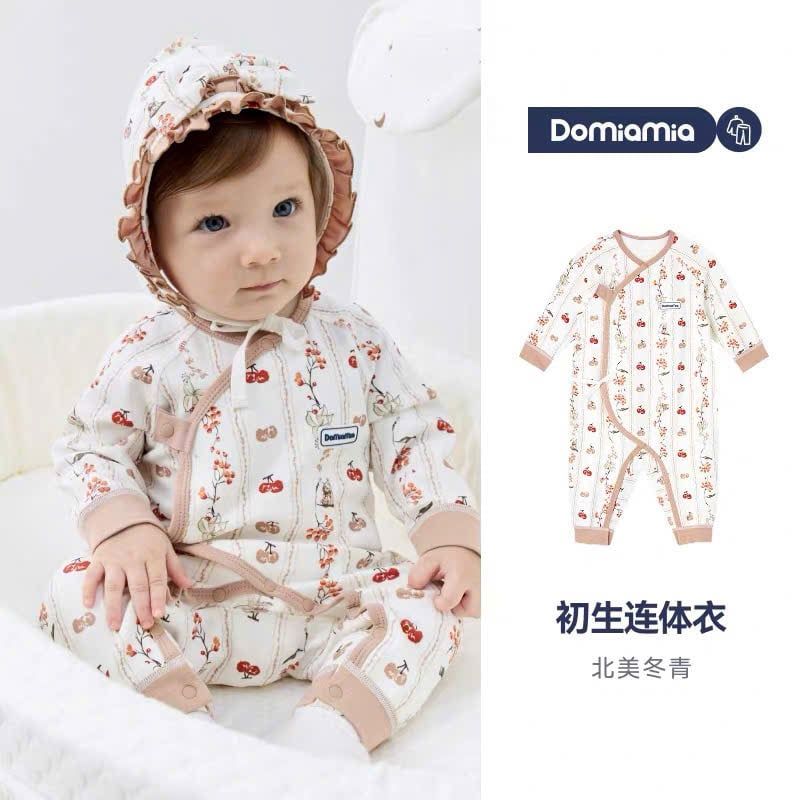 Bộ liền thân dài tay Domiamia được làm từ chất liệu SofComfy™ – sự kết hợp “vàng” giữa cotton và sợi spandex, mang đến cảm giác mềm mại, co giãn đàn hồi và êm ái khi chạm da.