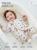 Thành phần vải gồm 95% cotton và 5% spandex, co giãn nhẹ, mềm và ôm vừa vặn. Có ba size 59, 66 và 73 phù hợp cho bé từ 0–12 tháng (cao 52–75cm, nặng 3–8.5kg).