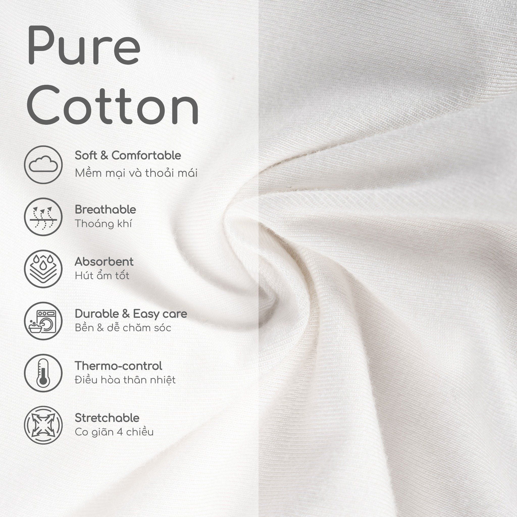 - Thành phần sợi 100% pure cotton (bông tinh khiết), an toàn cho làn da nhạy cảm.