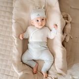 - Cạp quần cao, bản rộng, không chun, ôm mềm mại giúp bé tránh giật mình, giữ ấm bụng sữa.