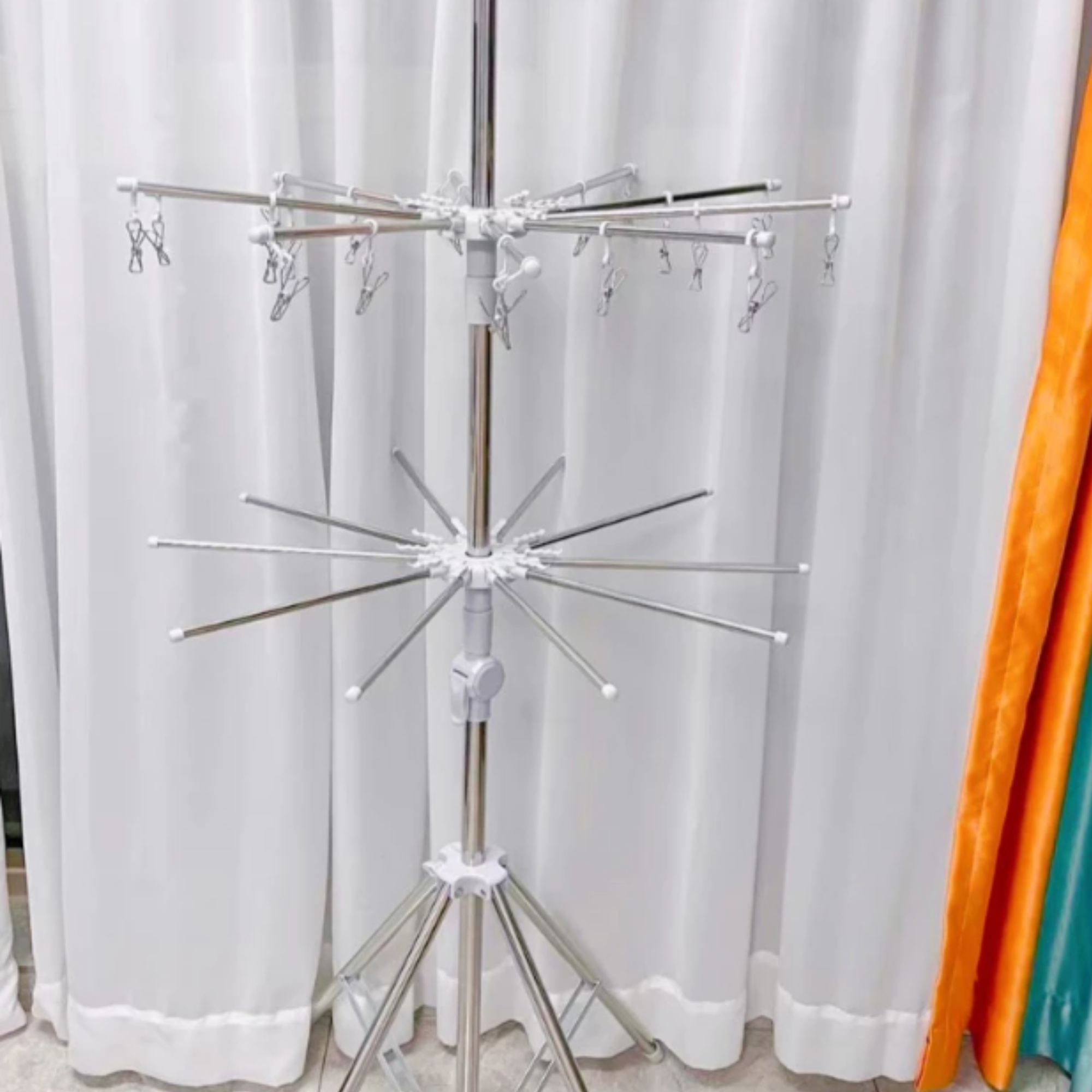 Xoay 360 độ: Trục chính của cây phơi có thể xoay tròn, giúp mẹ đứng yên một chỗ vẫn có thể treo hoặc lấy đồ ở mọi phía cực kỳ tiện lợi.
