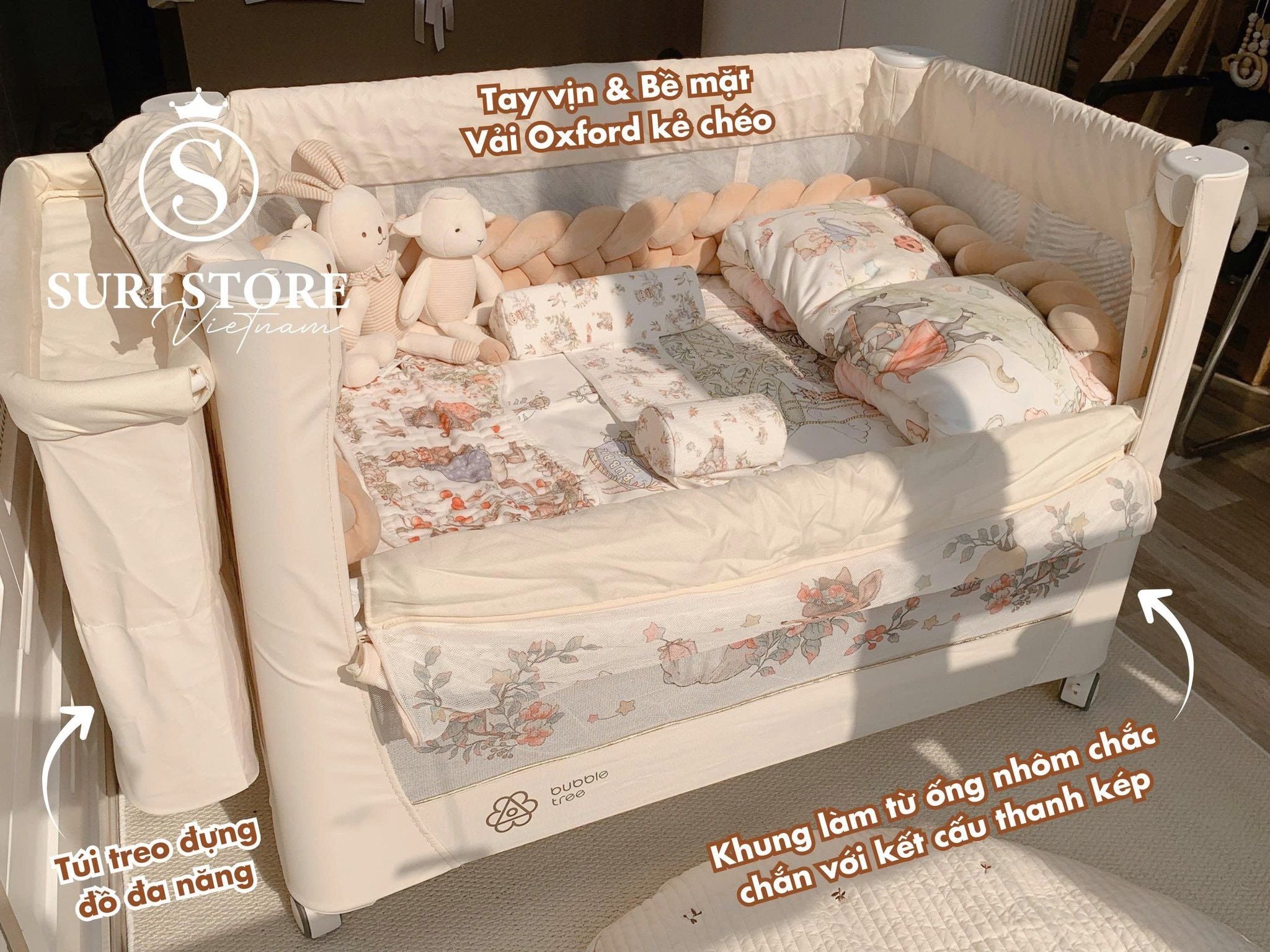 Cũi Bubble Tree kèm phụ kiện bàn thay tã+ giỏ đựng đồ