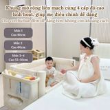 Mở rộng liền kề giường mẹ với 4 mức điều chỉnh chiều cao (Cao 80cm, 60cm, 55-50cm) giúp Cho con bú ban đêm dễ dàng hơn, không khoảng cách 🤱.