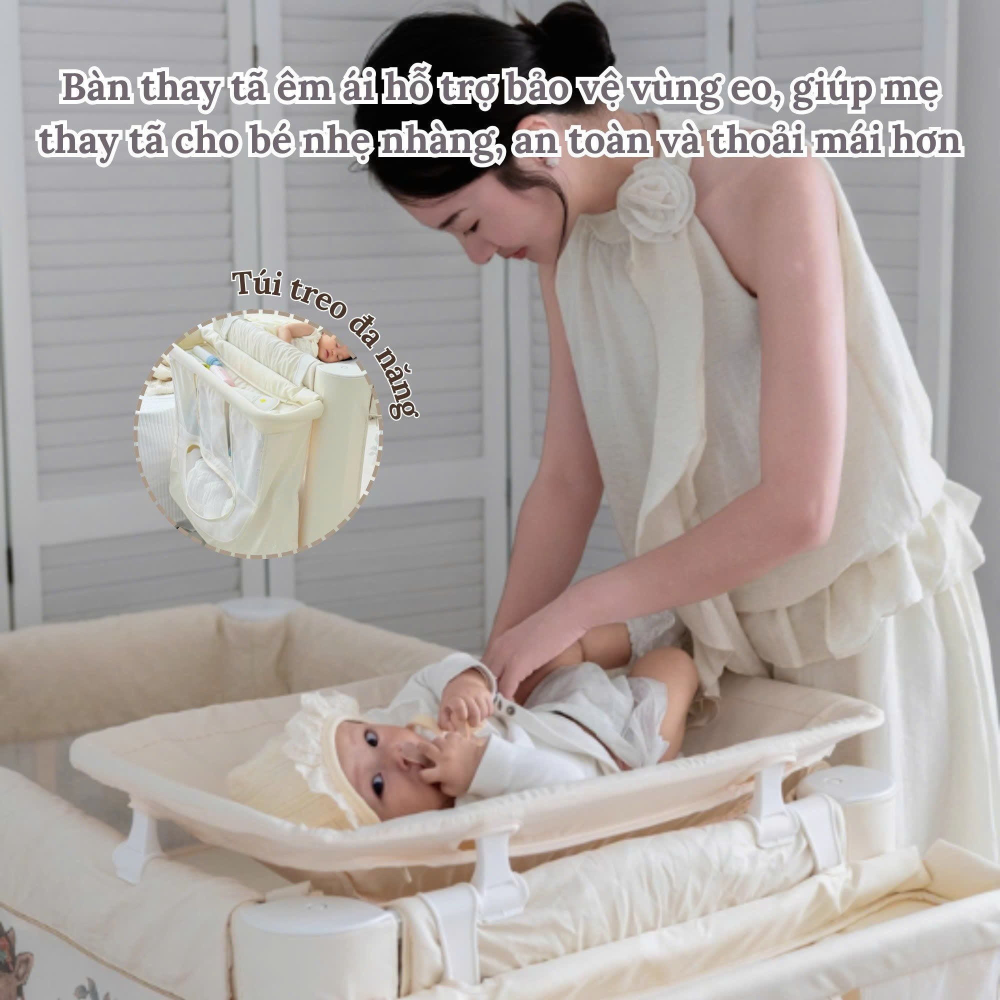 Bàn thay tã bảo vệ thắt lưng giúp mẹ thay tã dễ dàng hơn, tránh cúi người 🔄.