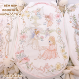 Họa tiết và màu sắc: Bộ sản phẩm Domicoco nổi bật với các họa tiết tinh tế và mang phong cách cổ tích. Các hình ảnh như lâu đài, nàng công chúa, các nhân vật hoạt hình đáng yêu và hoa lá nhẹ nhàng được in trên nền vải màu sắc trang nhã, tạo nên một không gian ngủ thơ mộng và sinh động cho bé.