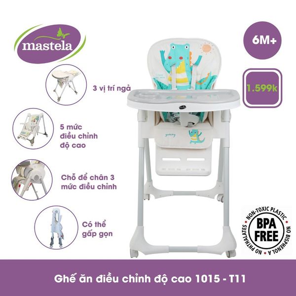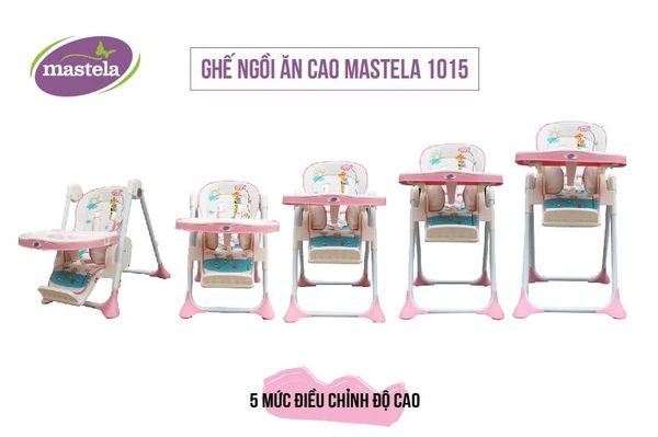 - Ghế ngồi ăn cao Mastela 1015 có tới 5 mức điều chỉnh độ cao khác nhau, dễ dàng điều chỉnh cho phù hợp với bàn ăn của từng gia đình.