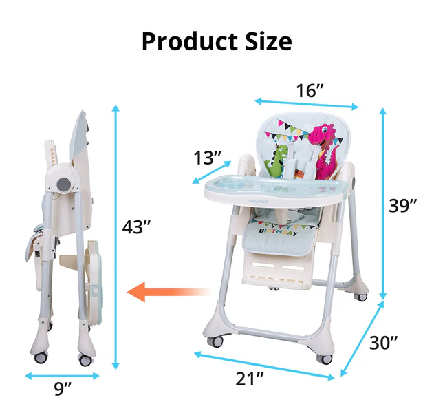 - Với thiết kế 3 vị trí ngả, ghế phù hợp với các tư thế ăn của trẻ: nằm uống sữa, nghiêng ăn bột, ngồi ăn dặm