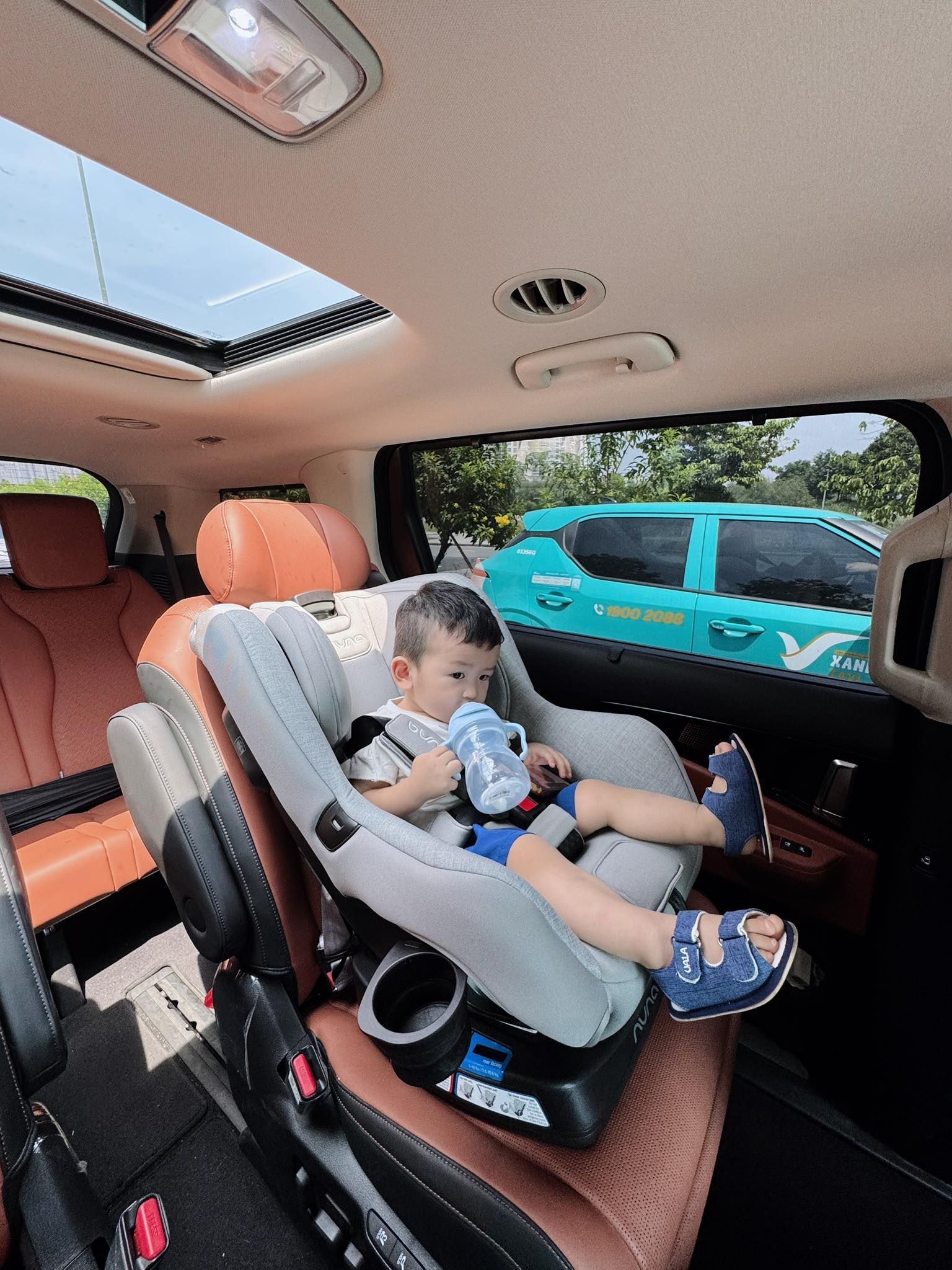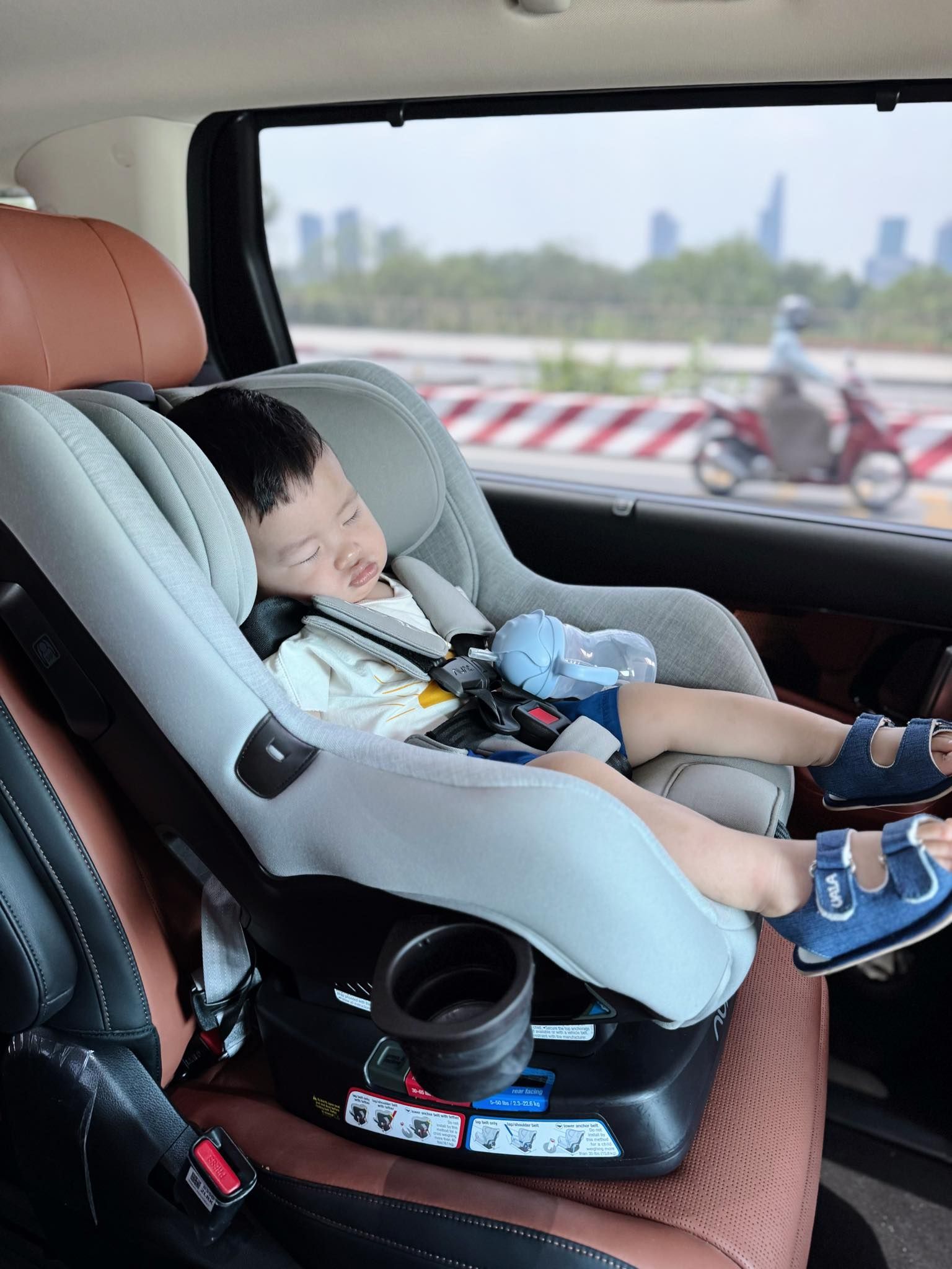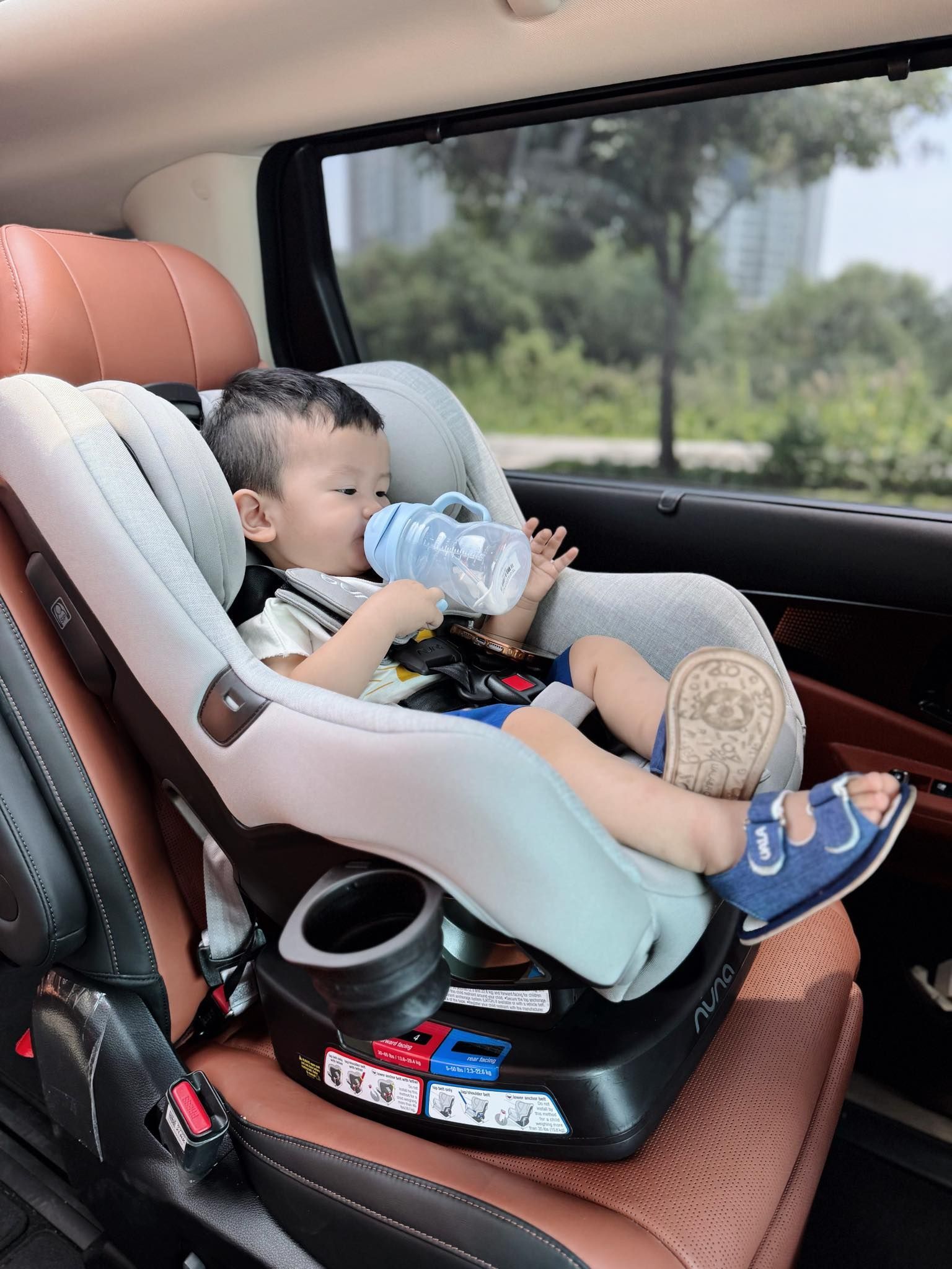 - Tư thế quay phía trước (Forward-facing): Khi bé ít nhất được 2 tuổi (hoặc khi không thể vừa ở tư thế quay ra sau) | Cân nặng bé 13.6 - 29kg