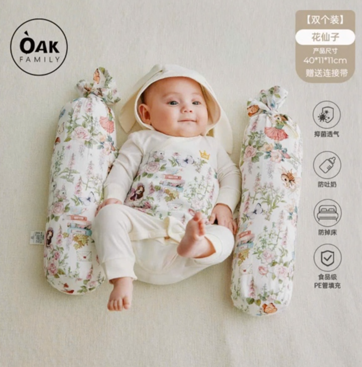 Kích thước: Chiều dài gối đủ để đặt dọc hai bên thân bé, thường dao động khoảng 40−60 cm.