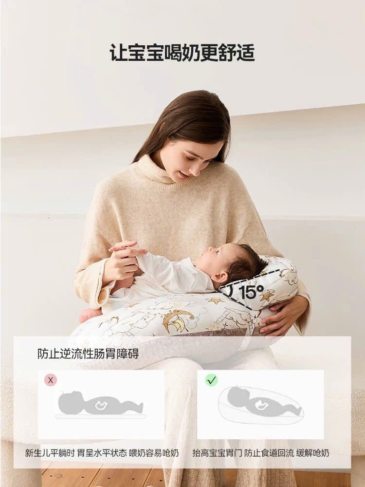 - Gối có độ nghiêng 15°, phù hợp với đặc điểm dạ dày nằm ngang của trẻ sơ sinh, giúp nâng đầu bé nhẹ nhàng, ngăn trào ngược dạ dày và giảm nguy cơ sặc sữa.