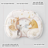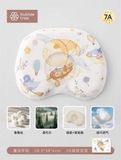 Thiết kế định hình: Gối có hình dáng lõm ở giữa, được thiết kế khoa học để giảm áp lực lên đầu bé khi nằm ngửa, giúp định hình khuôn đầu tròn trịa và chống bẹp đầu/méo đầu cho trẻ sơ sinh.