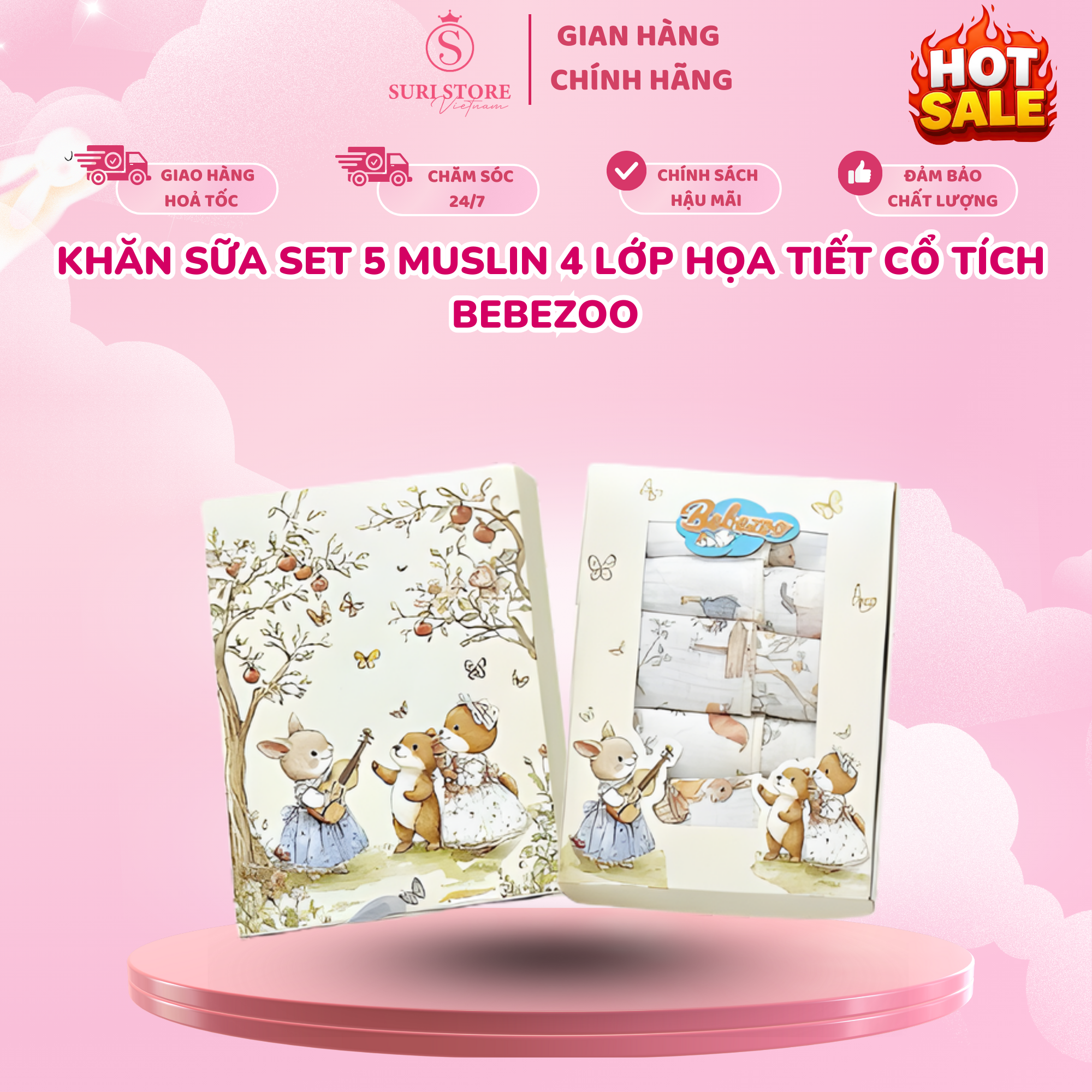 KHĂN SỮA MUSLIN 4 LỚP HỌA TIẾT CỔ TÍCH BEBEZOO