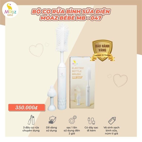 Bộ cọ rửa bình sữa điện Moaz BéBé MB-047 là trợ thủ đắc lực giúp bố mẹ vệ sinh bình sữa, núm ti, và ống hút cho bé một cách nhanh chóng, sạch sẽ và hiệu quả. Sản phẩm này giúp nhẹ nhàng đánh bay các mảng bám, cặn sữa, vi khuẩn ở mọi ngóc ngách, đảm bảo an toàn tuyệt đối cho sức khỏe của bé.