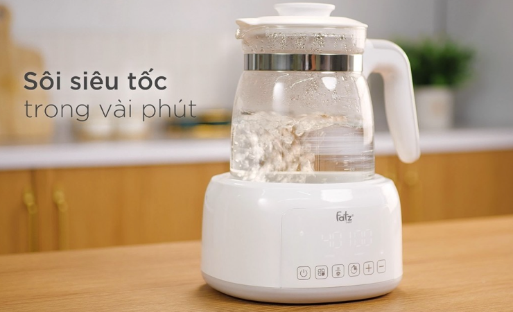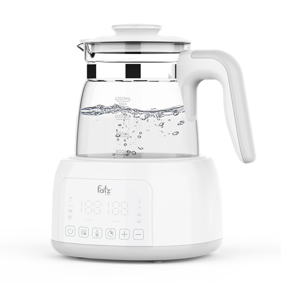 -Thiết kế hiện đại, tiện lợi: Thân bình bằng thủy tinh cao cấp có thể chịu được nhiệt độ cao, trong suốt giúp mẹ có thể quan sát được mực nước bên trong dễ dàng. Ngoài ra, bình có thể chứa đến 1200ml nước, đây là lượng nước phù hợp mà cả gia đình có thể sử dụng vừa pha sữa, pha trà, ngũ cốc,…