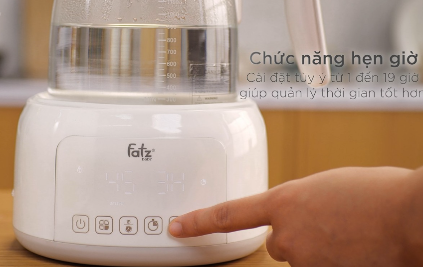 Chức năng HẸN GIỜ: đây là một chức năng mới của các sản phẩm dòng QUICK, mẹ có thể hẹn đặt giờ đun và hâm nước ở một thời gian nhất định trong ngày mà không cần phải giữ ấm trong những khoản thời gian không cần thiết giúp mẹ tiết kiệm chi phí điện năng không cần thiết. Ngoài ra, thiết bị sẽ tự động ngắt sau khi hết thời gian .