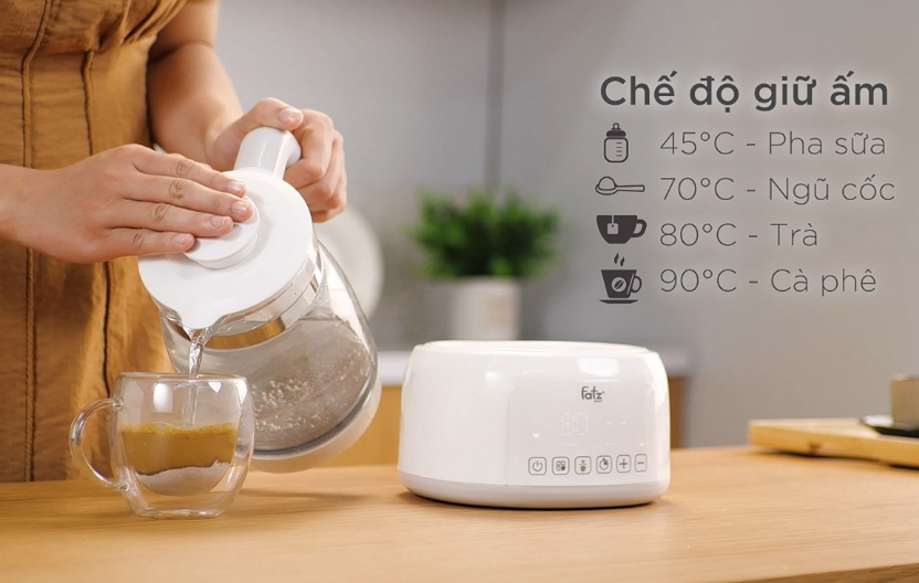 -Chức năng bộ nhớ: máy sẽ động ghi nhớ thói quen của mẹ khi sử dụng, nếu mẹ thường xuyên pha sữa thì máy sẽ ghi nhớ nhiệt độ pha sữa mà mẹ thường sử dụng, thì nước sẽ tự động được làm ấm đến nhiệt độ đó mà mẹ không cần thực hiện thêm một thao tác nào sau khi nước sôi.
