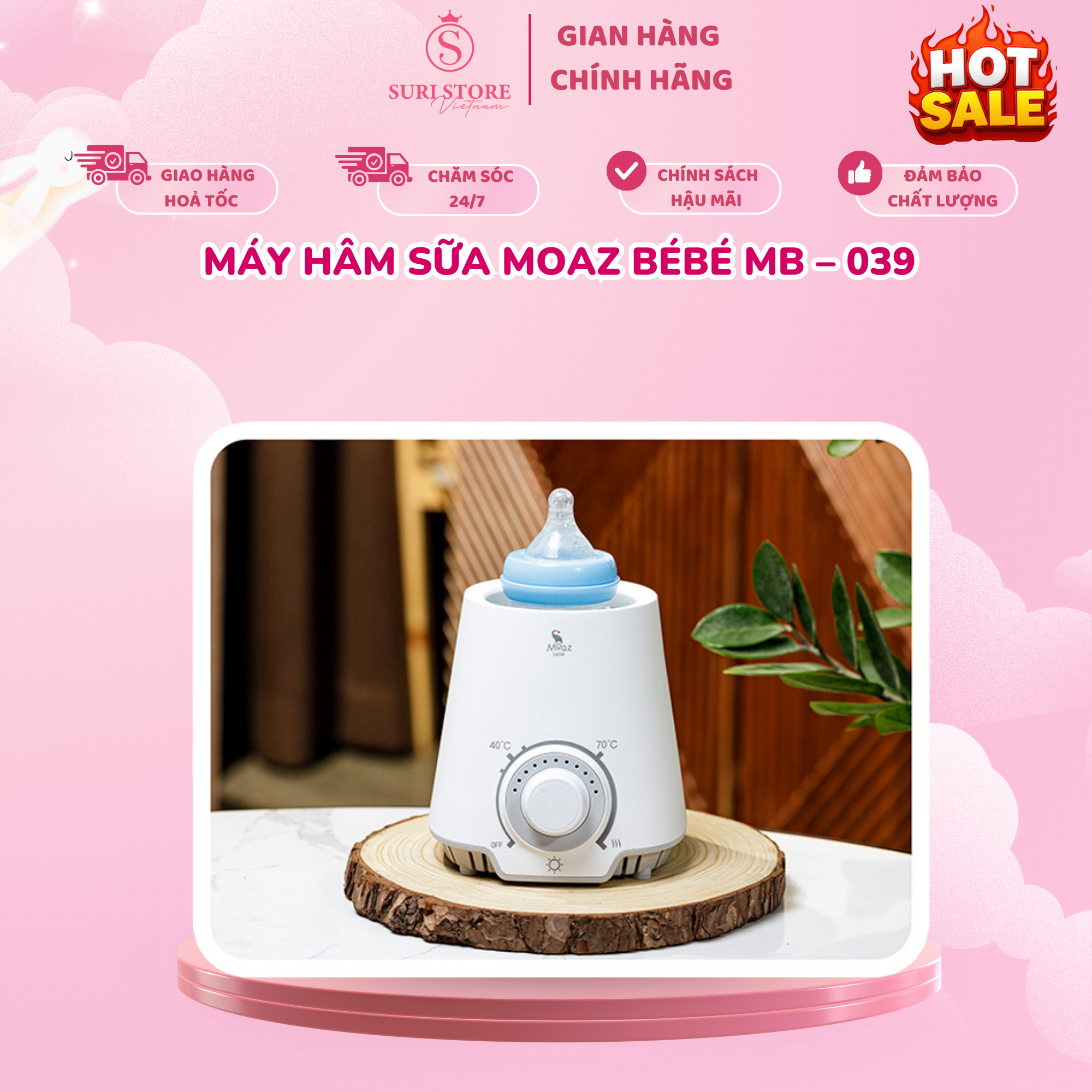 Máy hâm sữa Moaz BéBé MB – 039 ngoài chức năng hâm sữa tích hợp thêm chức năng tiệt trùng và hâm nóng đồ ăn. Với thiết kế nhỏ gọn, hiện đại mẹ dễ dàng chuẩn bị cho bé những cữ sữa đảm bảo dinh dưỡng, đảm bảo vệ sinh. Giờ đây, mẹ có thể yên tâm vì máy có chức năng tiệt trùng bằng hơi nước, loại bỏ vi khuẩn trong bình sữa của bé.