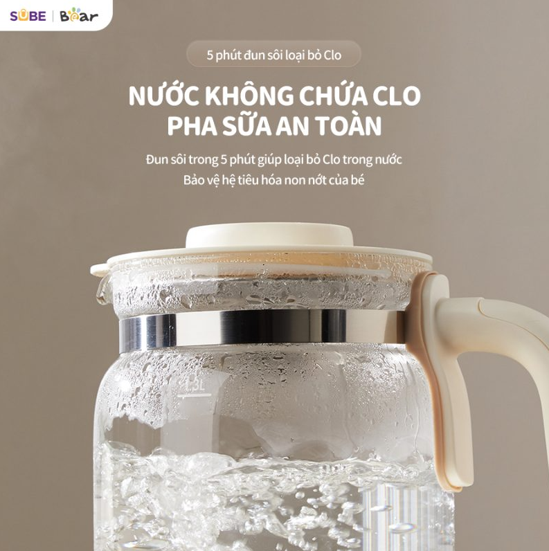 Sau khi đun sôi, máy sẽ chuyển sang chế độ giữ ấm. Nhiệt độ giữ ấm mặc định là 45°C. Mẹ có thể điều chỉnh thời gian giữ ấm theo nhu cầu. Chức năng đảm bảo: