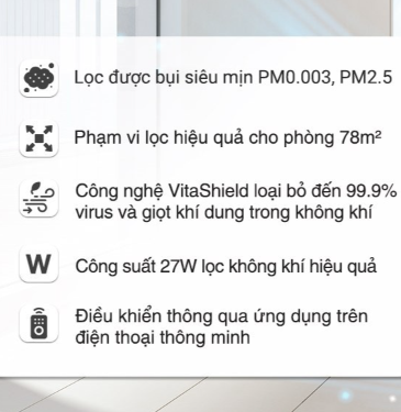 Loại bỏ tới 99,9% vi-rút và hạt khí dung có trong không khí
