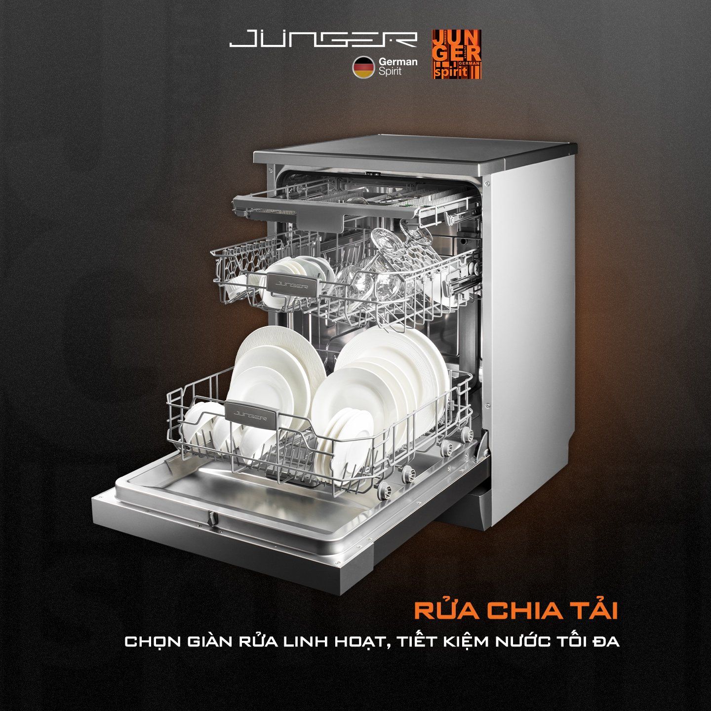 - Máy rửa bát Junger DWJ-600 sở hữu độ bền vượt trội, hệ thống đa chức năng hiện đại với công suất lớn, khả năng làm sạch nhanh, hiệu quả và tiết kiệm năng lượng tối đa.