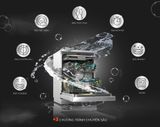 - Rửa chuyên sâu: Thời gian rửa mặc định 2 giờ 55 phút và nhiệt độ nước cao từ 50°C đến 70°C để loại bỏ mọi vết bẩn cứng đầu, dầu mỡ, thức ăn khô bám dính trên chén bát, xoong chảo, đồ sành sứ.