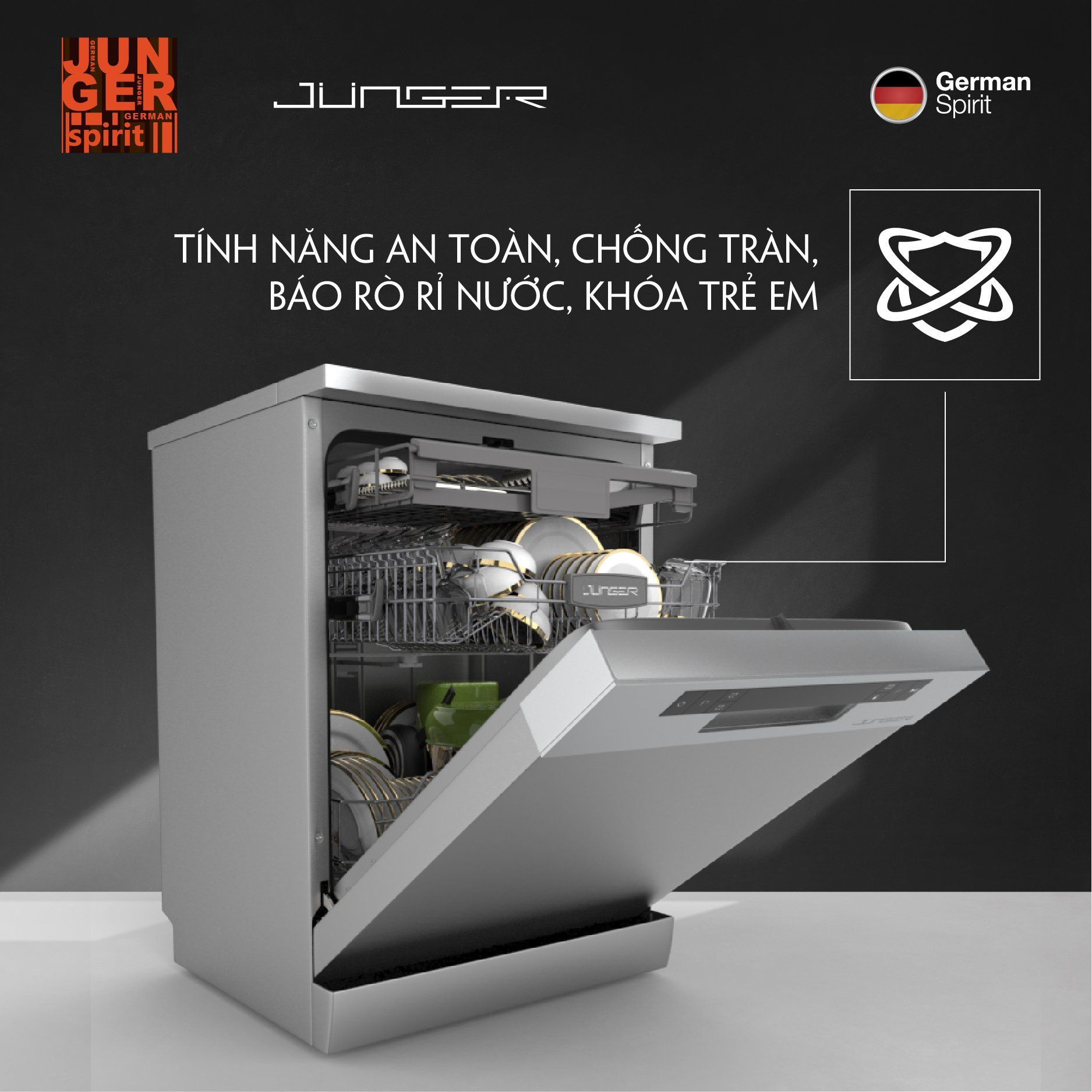- Không chỉ là một chiếc máy rửa bát thông thường, Junger DWJ-600 còn là còn là đồ dùng nội thất cao cấp mang đến sự tiện nghi và đẳng cấp cho không gian bếp gia đình.