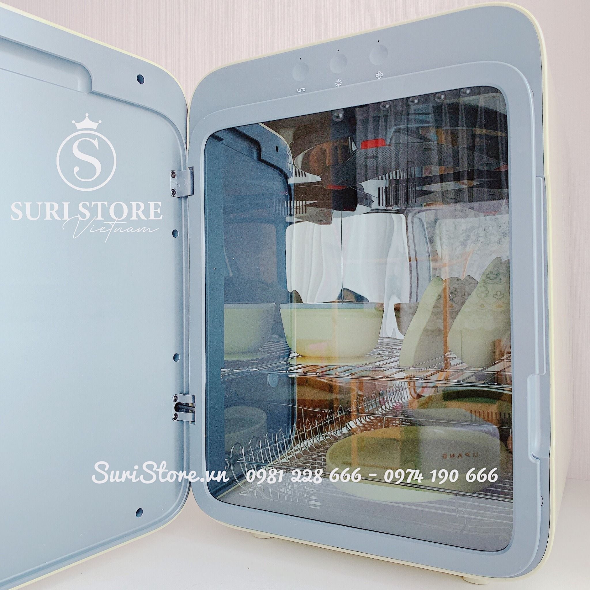 - Tiệt trùng 99.9% vi khuẩn; sấy khô, khử mùi bằng tia UV