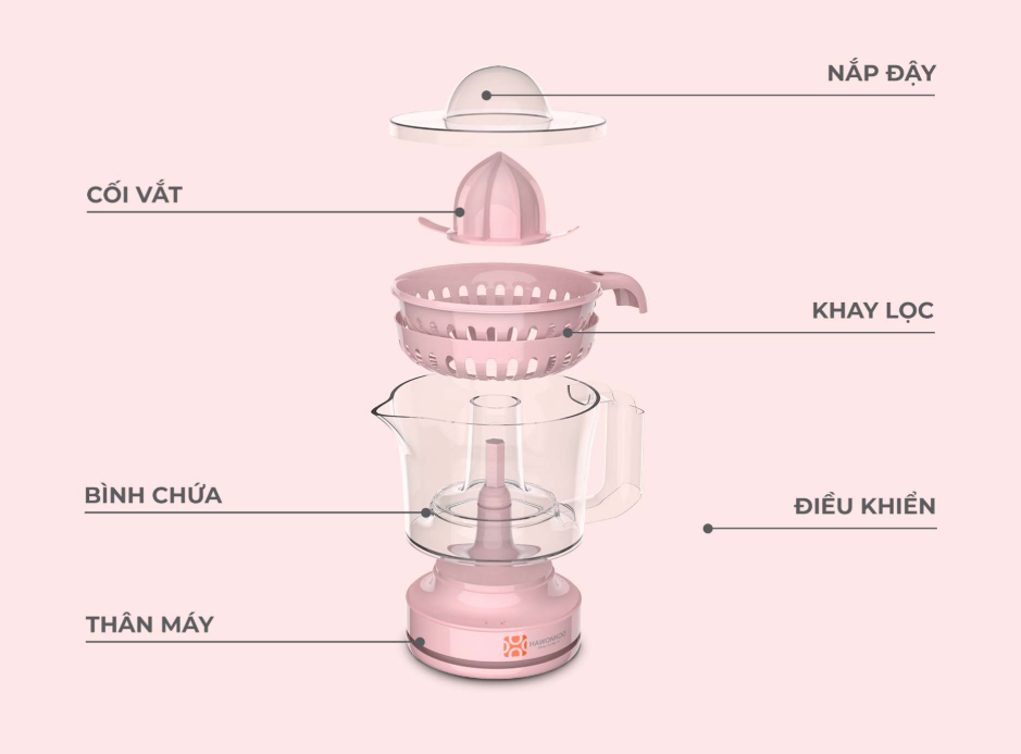 Máy vắt cam Hawonkoo OJH-001 có cấu tạo đơn giản, dễ dàng tháo lắp và vệ sinh. Nhờ đó, chị em nội trợ có thể tiết kiệm được nhiều thời gian chăm sóc bản thân và gia đình. Không chỉ có kích thước nhỏ gọn thuận tiện mang theo khi du lịch, công tác, OJH-001 còn giúp tiết kiệm diện tích nhờ hệ thống bảo quản dây dẫn dưới vỏ máy rất tiện lợi và an toàn.