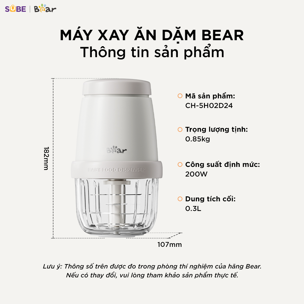 Máy Xay Ăn Dặm Cho Bé 0.3L Bear Máy Xay Máy Xay Cầm Tay Máy Xay Tỏi Ớt Máy Xay Đa Năng Ăn Dặm Máy Xay Mini CH - 5H02D24