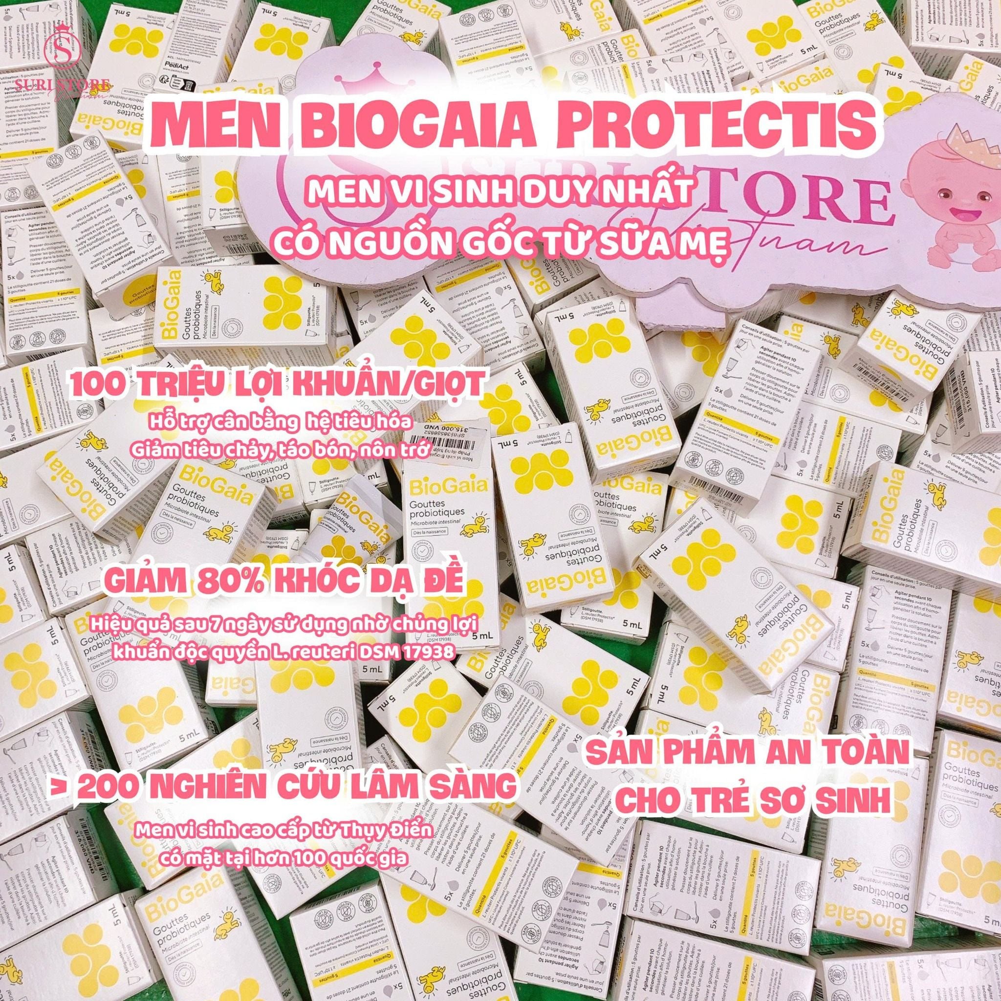 - Men vi sinh dạng nhỏ giọt cho trẻ sơ sinh BioGaia Protectis Gouttes 5ml là sản phẩm có chứa chủng lợi khuẩn L.reuteri DSM 17938 đã được đưa vào 104 nghiên cứu ở 10259 trẻ nhỏ, trong đó 4420 là trẻ sơ sinh và sinh non. BioGaia Protectis Gouttes đã chứng minh được hiệu quả ưu việt khi dùng để điều trị các vấn đề về tiêu hóa cho trẻ như: