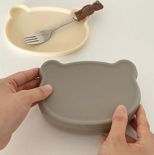 - Mẹ có thể sử dụng đa chức năng, nắp khay gấu bảo quản thức ăn, hoặc dùng như 1 chiếc đĩa ăn xinh xắn cho con