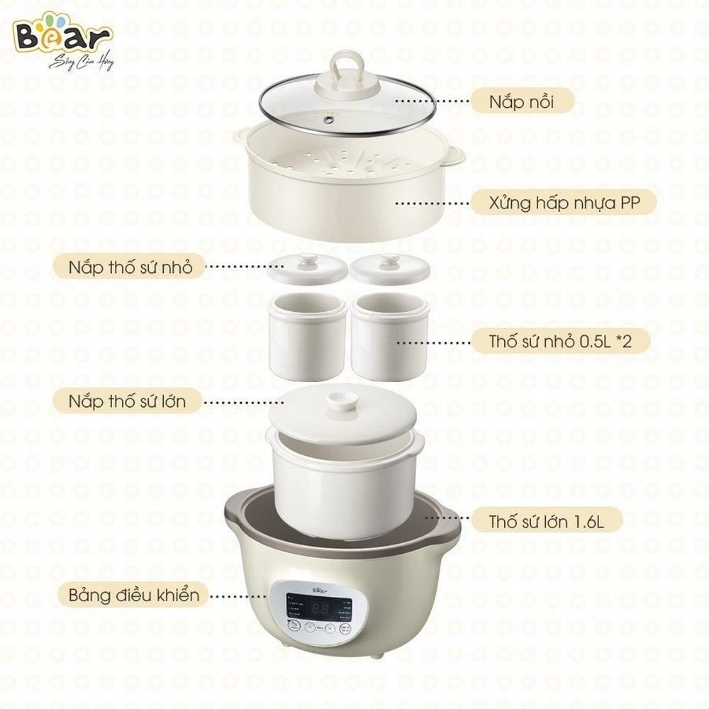 Nồi nấu cháo chậm Bear 1.6L đa chế độ nấu ăn