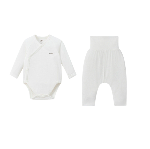 Đây là một bộ sản phẩm sơ sinh lý tưởng, bao gồm một áo Bodysuit dài tay cài lệch và một Quần dài cạp cao, cả hai đều được làm từ chất liệu Nu Petit nổi tiếng của Nous.