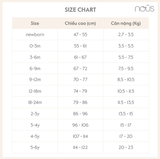 - Size Newborn: ( Viết tắt: NB ) chiều cao: 55cm ~ cân nặng: 2.7 - 5.5Kg