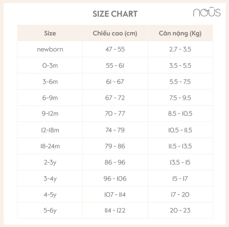 ☁️ HƯỚNG DẪN CHỌN SIZE NOUS: