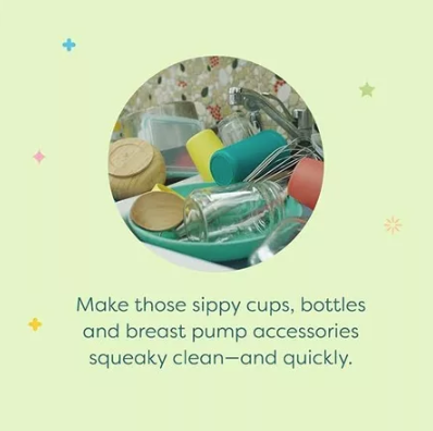 – Làm sạch bình sữa, núm ti, đồ chơi, bát đĩa của bé mà vẫn giữ ẩm da tay mẹ.
