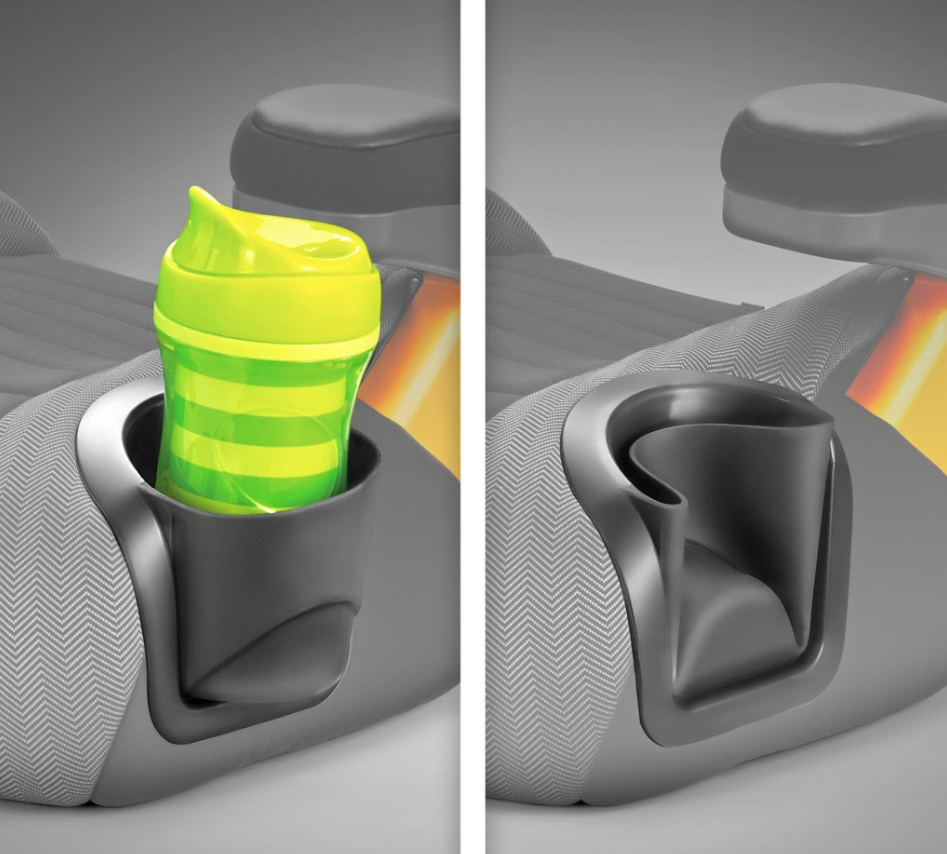 Hai cốc có thể uốn cong và gập lại để tiết kiệm không gian, tháo rời dễ dàng và an toàn khi rửa bằng máy rửa chén. Ngoài ra, chất vải Polyester có thể tháo rời và giặt bằng máy, bao gồm đệm ngồi và vỏ bọc tay vịn. Mặt dưới ghế êm ái giúp bảo vệ ghế xe ô tô khỏi bị hư hỏng.