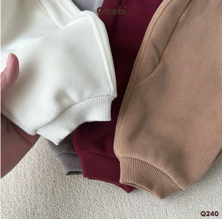 ✔ Chất liệu: 93% Polyester 7% Spandex. Chất liệu nỉ dày 2 lớp ấm áp cho bé vào mùa đông