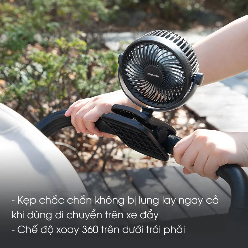 - Đế kẹp vững chắc, giúp quạt không bị lung lay ngay cả khi kẹp lên xe đẩy