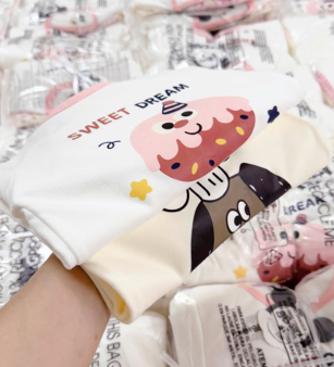 Áo: Màu trắng kem, in hình một nhân vật hoạt hình đáng yêu đang đội kem