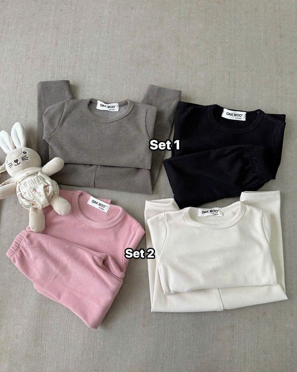 Đây là các set đồ dài tay và quần dài trơn màu, có thiết kế ôm sát vừa phải, chuyên dùng làm đồ giữ nhiệt mặc lót bên trong hoặc đồ mặc nhà/ngủ cơ bản cho bé.